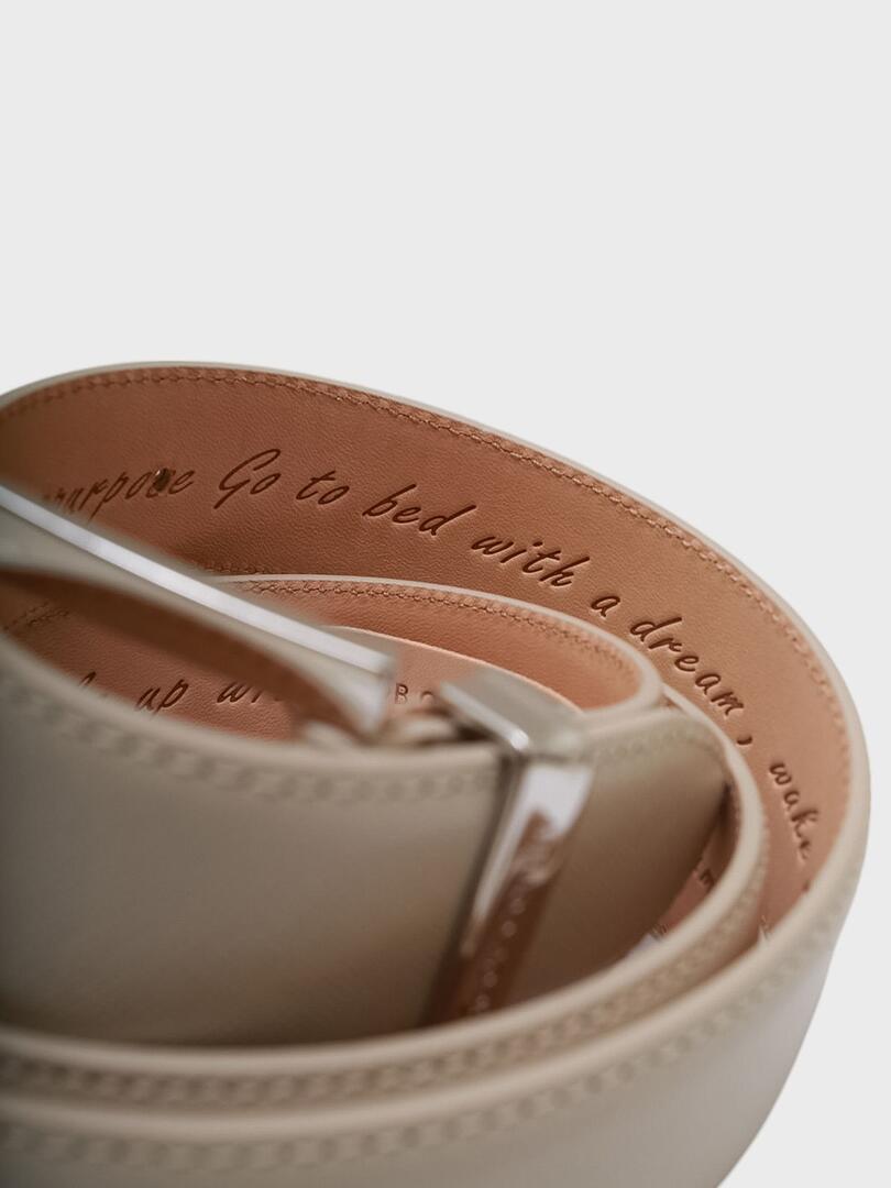 Ремень Jacob Cohen выполнен из высококачественной кожи светло-бежевого цвета с гладкой текстурой, придающей ему элегантный и современный вид. Модель дополнена металлической пряжкой серебристого цвета с выбитым логотипом бренда "Jacob Cohen", которая обеспечивает надежное крепление. Особенностью этого ремня является обратная сторона, где нанесено вдохновляющее цитатой: "Go to bed with a purpose, wake up with a dream" (Ложись спать с целью, просыпайся с мечтой). Этот ремень идеально подходит для создания как делового, так и повседневного образа, добавляя элемент индивидуальности и стиля. натуральная кожа Погрузитесь в мир итальянской роскоши с коллекциями Jacob Coh?n. Каждая пара джинсов — это результат более 100 часов ручной работы, выполненной с использованием высококачественного японского денима Kurabo и Mamarato. Особенности бренда включают эксклюзивные детали, такие как пуговицы с драгоценными камнями, вышивку, бирки из пони и уникальные запахи, придающие каждой паре индивидуальность. Jacob Coh?n идеально подходят для тех, кто ценит комфорт, элегантность и внимание к деталям.