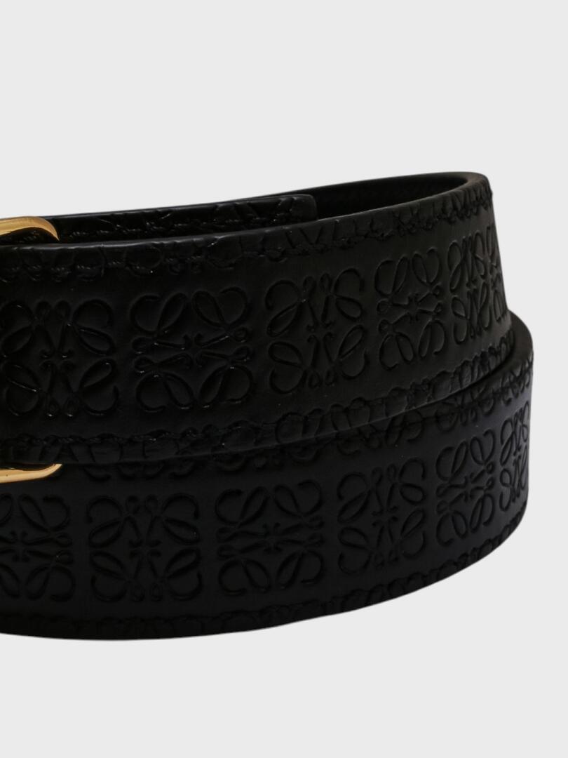 Пояс Loewe выполнен из черной кожи с текстурным узором, повторяющим логотип бренда. Модель дополнена золотым металлическим пряжкой в виде крупного логотипа, которая служит как функциональным элементом, так и стильным акцентом. Пояс сочетает классический дизайн с современными деталями, идеально дополняя как деловые, так и повседневные образы. натуральная кожа Погрузитесь в мир утончённой элегантности с коллекциями Loewe. Каждое изделие бренда — это сочетание безупречного качества, инновационного дизайна и традиционного мастерства. Будь то культовая сумка Puzzle, стильный жакет или элегантное платье, продукция Loewe подчеркнёт вашу индивидуальность и создаст неповторимый образ.