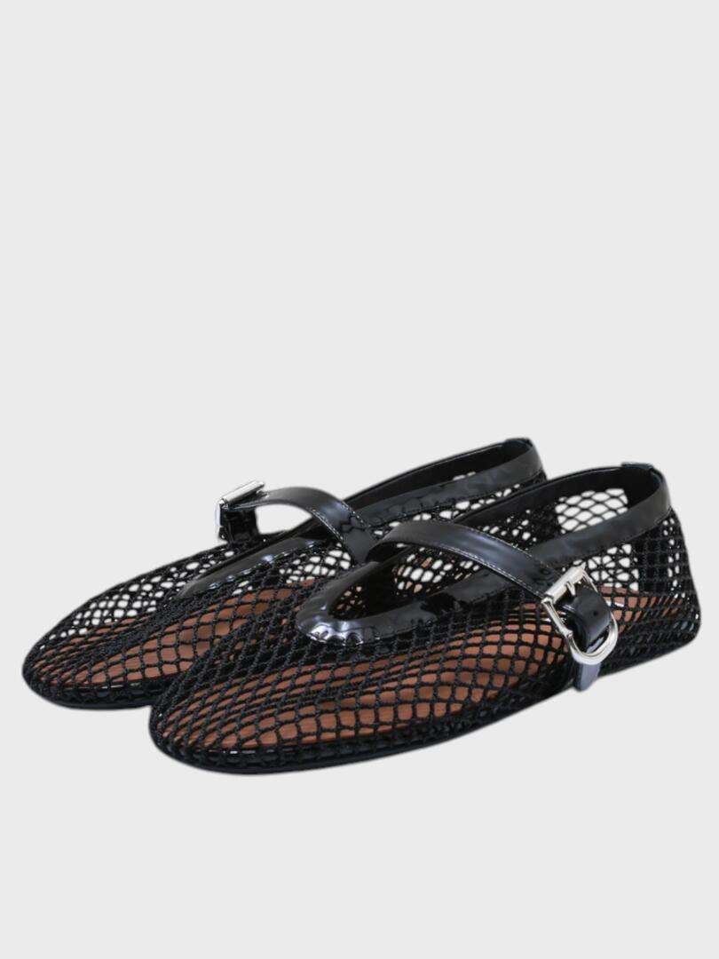 Балетки Ala?a выполнены из чёрной перфорированной сетчатой кожи с глянцевыми лакированными вставками и ремешком на металлической пряжке; модель с острым носком и утончённым силуэтом сочетает современный дизайн и безупречное качество пошивки — идеальный выбор для стильного и комфортного образа. Основа: текстиль Подошва: резина Погрузитесь в мир утончённой элегантности с коллекциями Ala?a. Каждое изделие бренда — это воплощение мастерства и стиля. Скульптурные силуэты, высококачественные материалы и внимание к деталям делают продукцию Ala?a идеальной для тех, кто ценит красоту и комфорт. Будь то платье, обувь или аксессуар — продукция Ala?a подчеркнёт вашу индивидуальность и создаст неповторимый образ на любой случай.