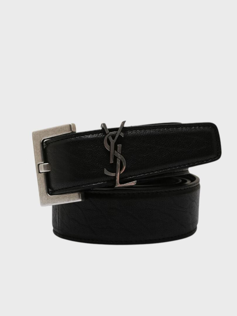 Ремень Saint Laurent выполнен из высококачественной черной кожи с фактурным граненым текстурным покрытием. Дизайн акцентирован крупным металлическим логотипом "YSL" на пряжке, которая сочетает матовый и полированный эффекты. Модель дополнена прочной застежкой и внутренней подкладкой для комфорта. Классический черный цвет и элегантное исполнение делают этот ремень универсальным аксессуаром, подходящим как для повседневного, так и для делового стиля. натуральная кожа Saint Laurent — французский модный дом, основанный в 1961 году Ивом Сен-Лораном и Пьером Берже. Бренд стал известен благодаря элегантной и стильной одежде, а также внедрению революционных идей в моду, таких как мужской костюм для женщин. Сегодня Saint Laurent продолжает оставаться одним из ведущих брендов в мире моды. Под руководством Энтони Ваккарелло, который возглавил бренд в 2016 году, Saint Laurent сохраняет свою узнаваемость и приверженность к роскоши, сочетая классику с современными элементами. Основные направления — готовая одежда, обувь, аксессуары и парфюмерия.