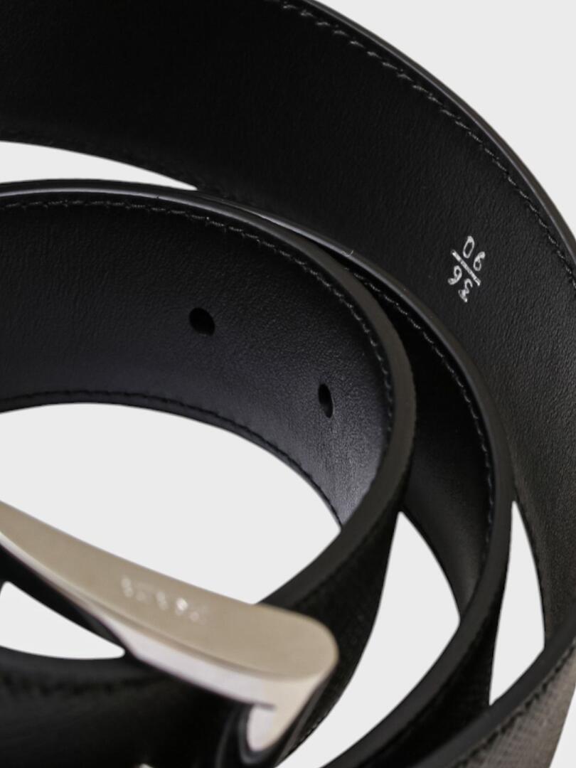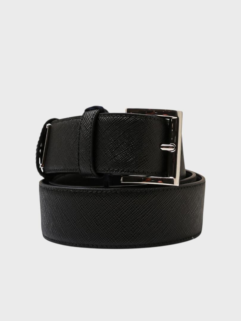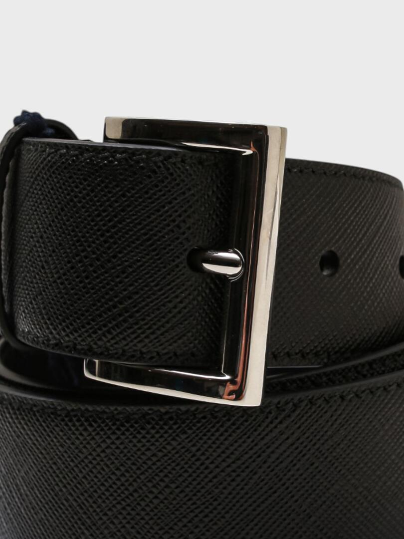 Ремень выполнен из черной фактурной кожи с гладкой внутренней поверхностью, обеспечивающей комфорт при ношении. Модель дополнена широким металлическим пряжкой с матовым покрытием и контрастным серебристым обрамлением, которая создает эффектный акцент. Тонкая стежка по краям ремня подчеркивает качество исполнения. Универсальный дизайн позволяет сочетать изделие как с классической, так и с современной одеждой. Идеальный выбор для делового или повседневного образа. натуральная кожа Откройте для себя мир итальянской роскоши с коллекциями Prada. Каждое изделие бренда — это сочетание безупречного качества, инновационного дизайна и интеллектуального подхода к моде. Будь то культовая сумка Galleria, элегантное платье или стильные аксессуары, продукция Prada подчеркнёт вашу индивидуальность и создаст неповторимый образ.