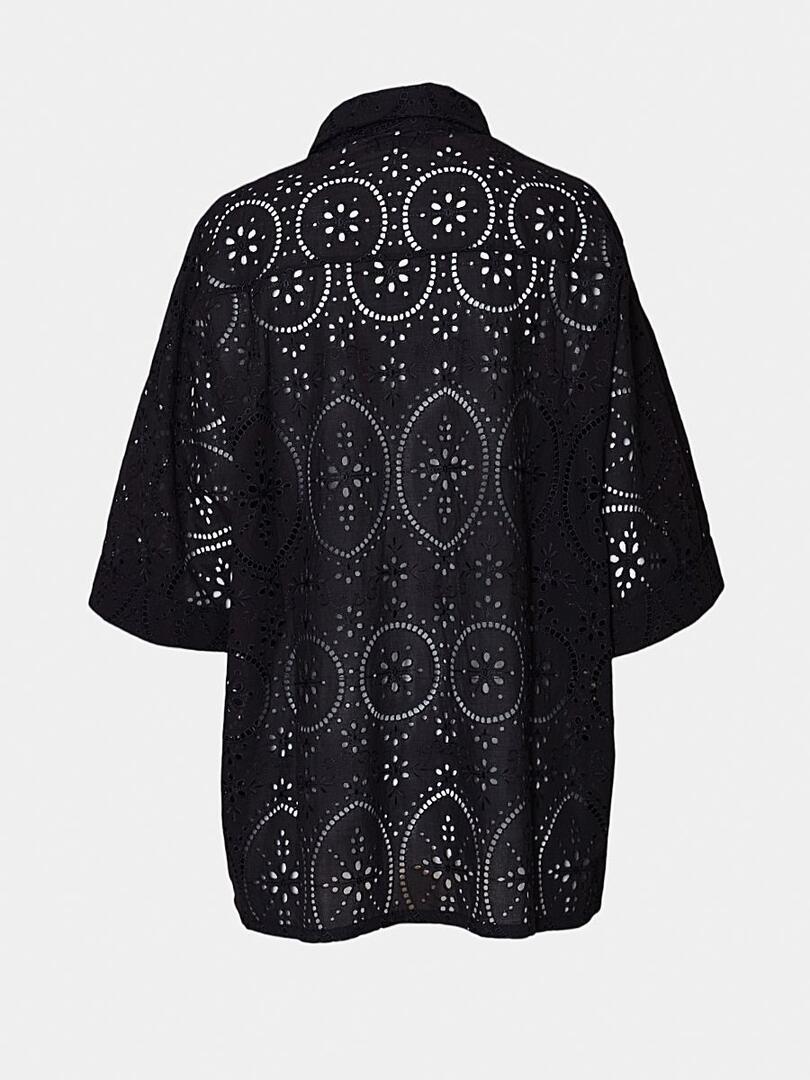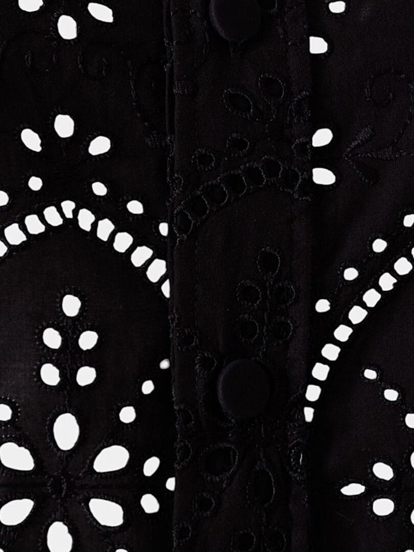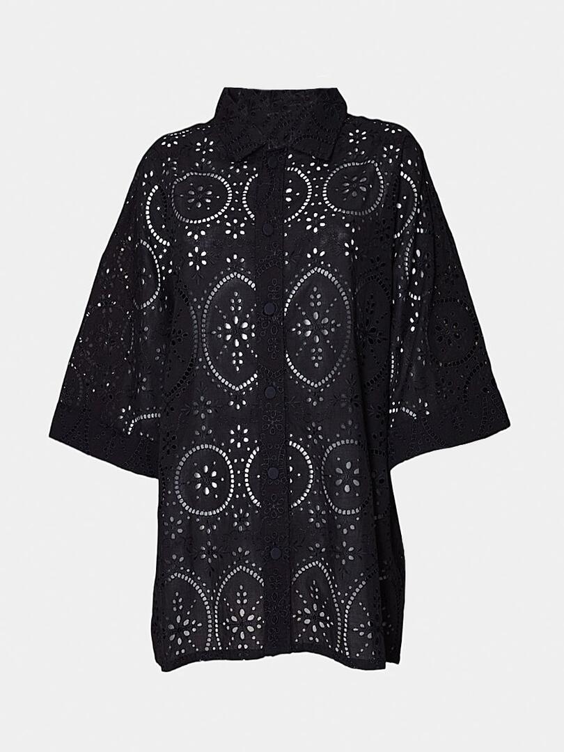 Рубашка Charo Ruiz выполнена из черного фактурного материала с роскошным кружевным узором, включающим геометрические элементы и точечные детали. Модель прямого кроя дополнена классическим воротником-стойкой и застежкой на пуговицы, что придает ей элегантность и строгий стиль. Контраст между плотной тканью и воздушным кружевом создает уникальный баланс текстур, делая эту рубашку идеальным выбором для вечернего или особенного случая. 70% хлопок 30% полиэстер Откройте для себя Charo Ruiz — испанский дух свободы, цвета и женственности в каждой детали. Каждое изделие дышит комфортом, индивидуальностью и теплом южного солнца. Идеально для тех, кто ценит непринуждённую элегантность, натуральные материалы и моду, наполненную душой. Charo Ruiz — стиль, в котором чувствуешь себя собой.