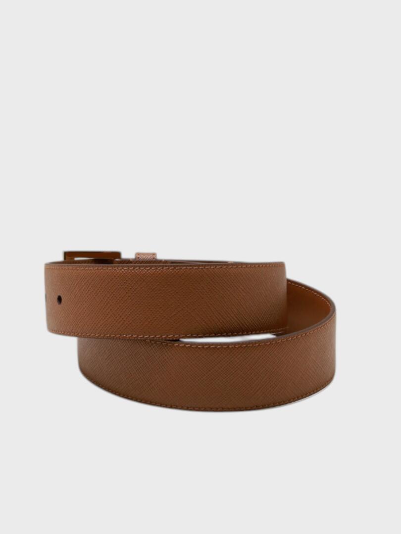 Ремень Prada выполнен из качественной кожи коричневого цвета с фактурным рисунком. Модель отличается лаконичным дизайном и классическим исполнением, что делает ее универсальным аксессуаром для любого образа. Застежка выполнена из золотистого металла с фирменной эмблемой бренда в виде треугольника, которая подчеркивает статусность изделия. Ремень дополнен удобной системой регулировки длины, а его внутренняя сторона оформлена мягкой кожей для максимального комфорта при носке. Идеально сочетается как с деловой, так и с повседневной одеждой, добавляя образу изысканности и премиальности. натуральная кожа Откройте для себя мир итальянской роскоши с коллекциями Prada. Каждое изделие бренда — это сочетание безупречного качества, инновационного дизайна и интеллектуального подхода к моде. Будь то культовая сумка Galleria, элегантное платье или стильные аксессуары, продукция Prada подчеркнёт вашу индивидуальность и создаст неповторимый образ.