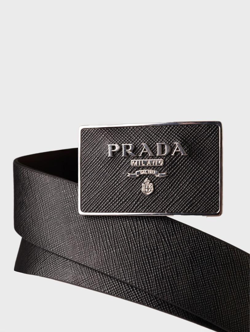 Ремень Prada из черной кожи с характерной текстурой Saffiano и массивной пряжкой с гравировкой логотипа — это классический аксессуар, который добавит образу строгости и безупречного стиля. натуральная кожа Откройте для себя мир итальянской роскоши с коллекциями Prada. Каждое изделие бренда — это сочетание безупречного качества, инновационного дизайна и интеллектуального подхода к моде. Будь то культовая сумка Galleria, элегантное платье или стильные аксессуары, продукция Prada подчеркнёт вашу индивидуальность и создаст неповторимый образ.
