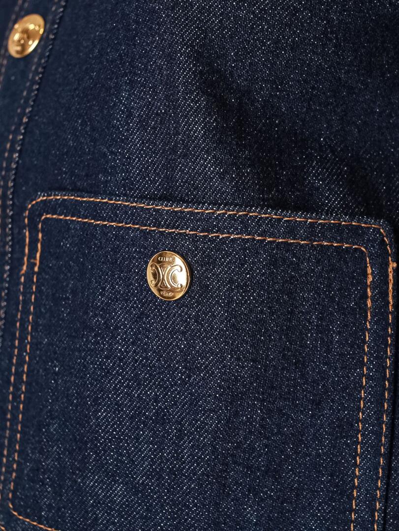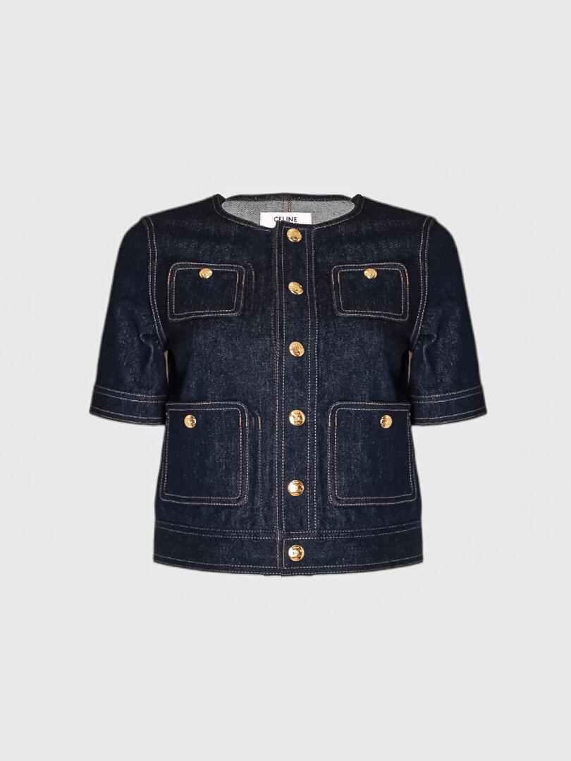 Жакет Celine выполнен из темно-синего денима высокого качества. Модель имеет короткие рукава и округлый вырез, что придает ей современный и элегантный вид. Особенностью жакета являются крупные золотые пуговицы с логотипом бренда "CELINE", которые добавляют элемент роскоши и узнаваемости дизайна. На передней части жакета расположены несколько функциональных карманов, также закрывающихся золотыми пуговицами. Швы выполнены аккуратно, с использованием контрастной светло-коричневой нити, что создает интересный визуальный эффект. Жакет сочетает в себе практичность и стиль, идеально подходя для повседневной носки или легкого офисного образа. 100% коттон Погрузитесь в мир утончённого минимализма с коллекциями Celine. Каждое изделие бренда отражает сочетание элегантности и функциональности, подчёркивая индивидуальность своего владельца. Будь то культовая сумка Trapeze, стильный жакет или аксессуар, продукция Celine станет неотъемлемой частью вашего гардероба, сочетая высокое качество и современный дизайн.