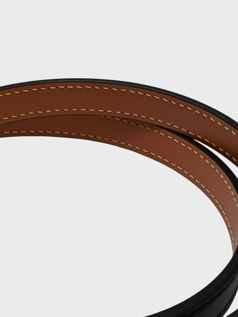 Пояс Loewe выполнен из качественной кожи в комбинации черного и коричневого цветов. Модель дополнена золотой металлической пряжкой с крупным логотипом бренда, которая служит как функциональным элементом, так и стильным акцентом. Тонкая отделка по краям и контрастные швы добавляют изысканности дизайну. Пояс идеально подходит для создания современных и элегантных образов, подходящих как для деловых, так и повседневных ситуаций. натуральная кожа Погрузитесь в мир утончённой элегантности с коллекциями Loewe. Каждое изделие бренда — это сочетание безупречного качества, инновационного дизайна и традиционного мастерства. Будь то культовая сумка Puzzle, стильный жакет или элегантное платье, продукция Loewe подчеркнёт вашу индивидуальность и создаст неповторимый образ.
