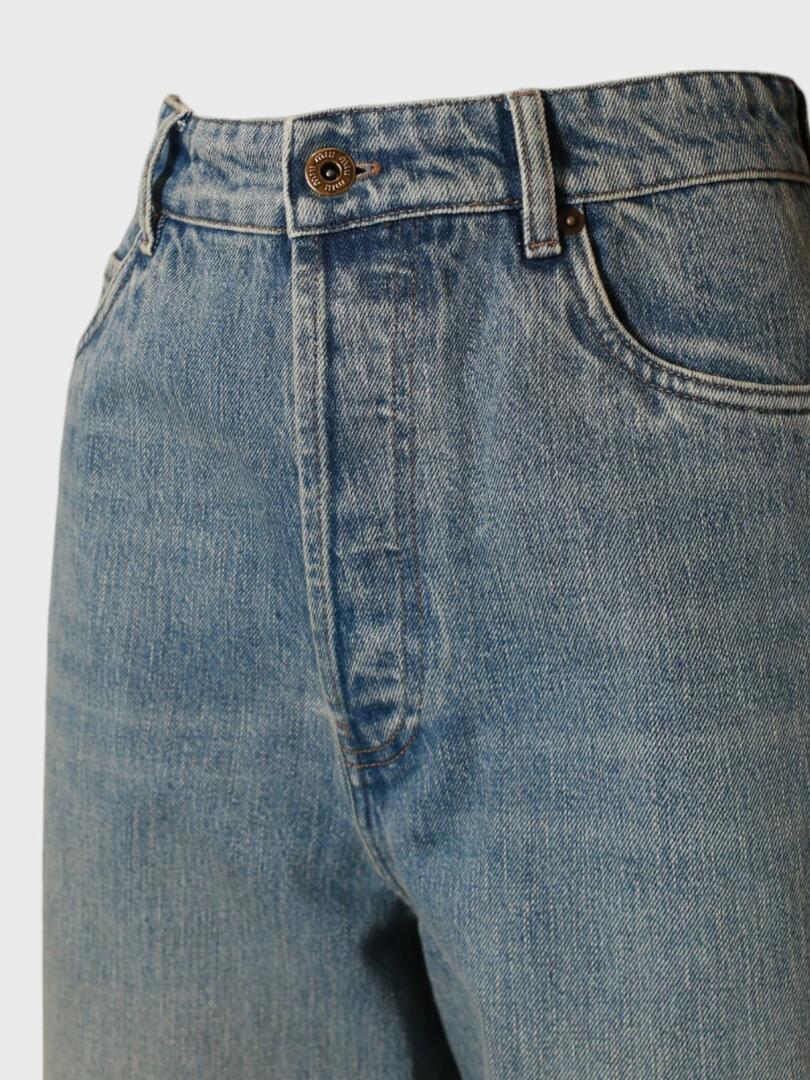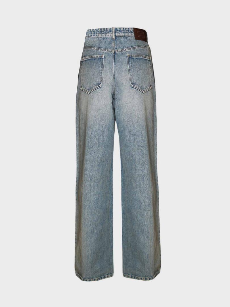 Джинсы Miu Miu выполнены из качественной денимовой ткани с эффектом потертости, что придает им уютный и стильный вид. Модель оформлена широким прямым кроем, который создает комфортную посадку и подходит для различных типов фигуры. Джинсы дополнены классической застежкой на пуговицу и металлические кнопки, а также имеют стандартные карманы спереди и сзади. На заднем кармане расположен вышитый логотип бренда "Miu Miu", добавляющий узнаваемость изделия. Стильные и практичные — идеальный выбор для повседневного использования или создания современных образов. Ткань: 100% хлопок Подкладка: 65% полиэстер 35% хлопок Погрузитесь в мир смелого и игривого стиля с коллекциями Miu Miu. Каждое изделие бренда — это сочетание элегантности и дерзости, отражающее современную женственность. Будь то мини-юбка, балетные туфли или стильная сумка, продукция Miu Miu подчеркнёт вашу индивидуальность и создаст неповторимый образ. Смело сочетайте классику с авангардом и будьте в центре внимания с Miu Miu.
