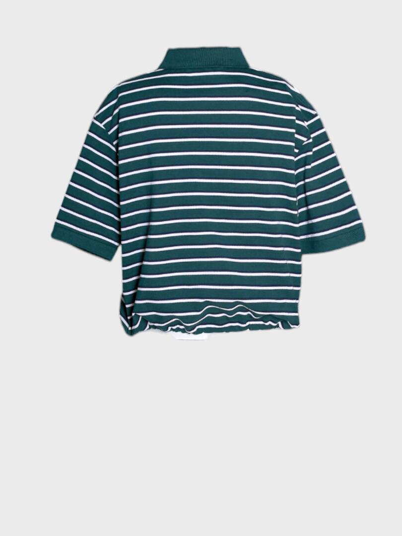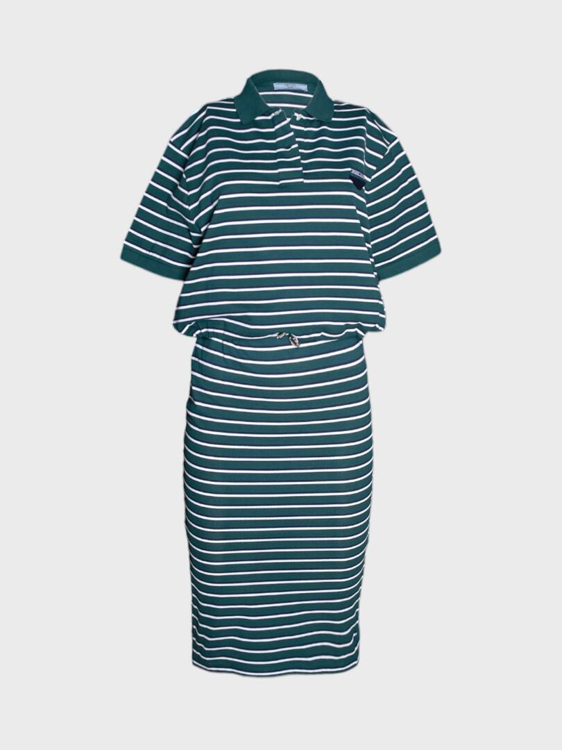 Стильный комплект Prada, состоящий из поло и юбки в полоску. Поло выполнено из качественного материала с элегантным сочетанием темно-зеленого цвета и белых полос, дополнена небольшим логотипом бренда на груди. Модель свободного кроя с короткими рукавами и классическим воротником, подчеркивающим современный дизайн. Юбка прямого кроя длиной миди, также украшена контрастными полосами, создавая эффектную гармонию с верхней частью комплекта. Такой набор из юбки и поло идеально подходит для повседневных выходов или деловых встреч, демонстрируя безупречный вкус и внимание к деталям. 100% хлопок Откройте для себя мир итальянской роскоши с коллекциями Prada. Каждое изделие бренда — это сочетание безупречного качества, инновационного дизайна и интеллектуального подхода к моде. Будь то культовая сумка Galleria, элегантное платье или стильные аксессуары, продукция Prada подчеркнёт вашу индивидуальность и создаст неповторимый образ.