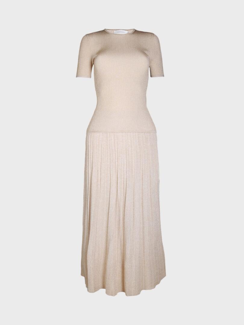 Костюм Zimmermann выполнен из фактурного трикотажа нежного бежевого оттенка, сочетает облегающий топ с короткими рукавами и длинную плиссированную юбку; модель подчёркивает силуэт, создавая элегантный и современный образ для деловых и вечерних мероприятий. 64% вискоза 29% полиамид 7% металлическое волокно Откройте для себя мир элегантности и утончённости с коллекциями Zimmermann. Каждое изделие бренда — это воплощение женственности и стиля. Изысканные ткани, романтичные принты и идеальная посадка делают вещи Zimmermann идеальными для тех, кто ценит красоту и комфорт. Будь то летний комплект, вечернее платье или стильный купальник — продукция Zimmermann подчеркнёт вашу индивидуальность и создаст неповторимый образ на любой случай.