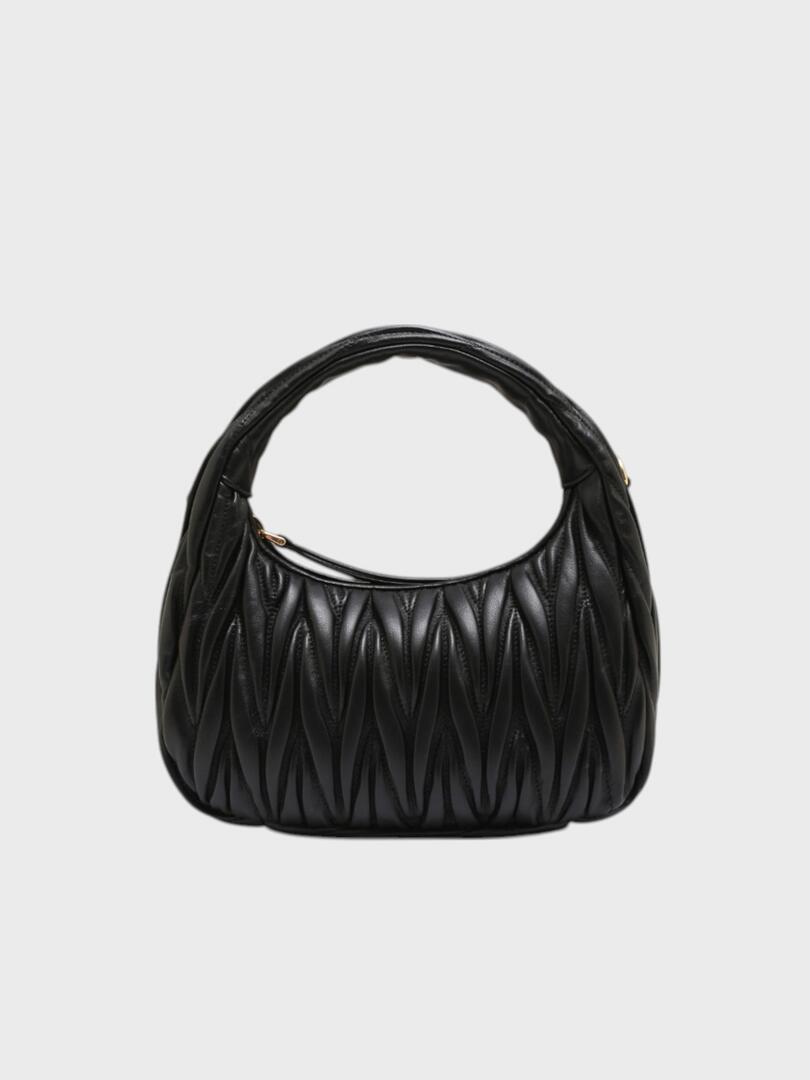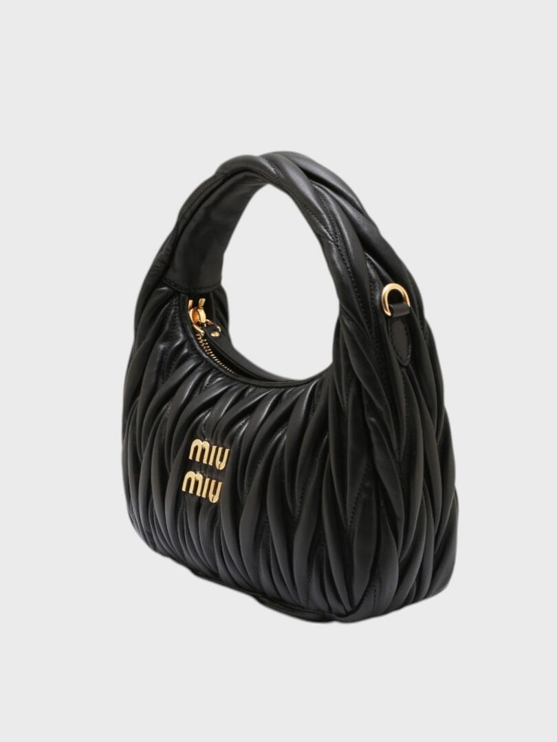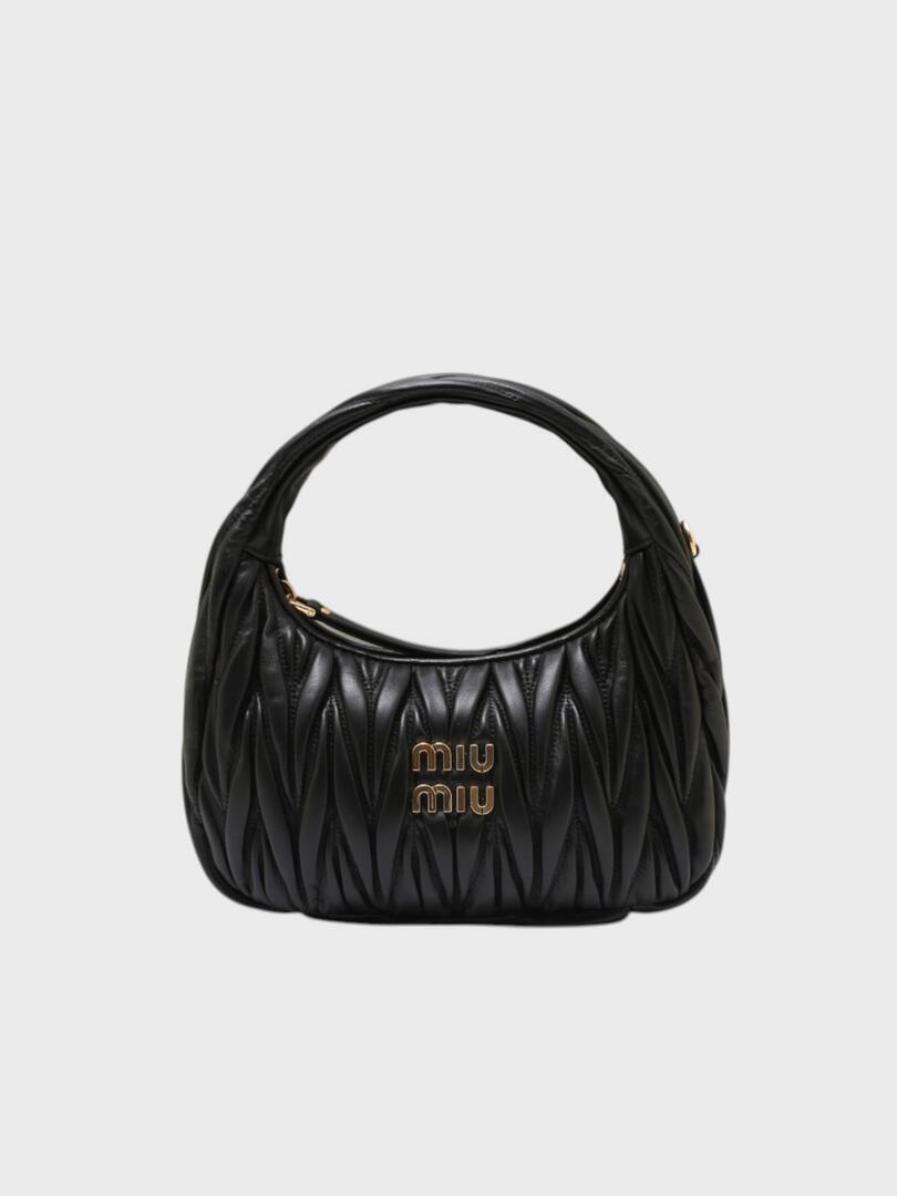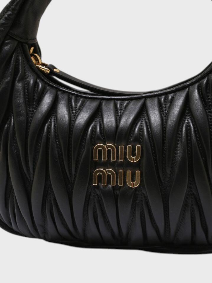 Сумка Miu Miu выполнена из высококачественной черной кожи с текстурным дизайном, созданным за счет складок и стежки. Модель дополнена золотыми акцентами на молниях и декоративных элементах, а также вышитым логотипом бренда на передней части. Ручки сумки обеспечивают удобную переноску, а компактный размер делает ее идеальной для повседневного использования. Идеальный выбор для тех, кто ценит стиль и качество в аксессуарах. натуральная кожа Погрузитесь в мир смелого и игривого стиля с коллекциями Miu Miu. Каждое изделие бренда — это сочетание элегантности и дерзости, отражающее современную женственность. Будь то мини-юбка, балетные туфли или стильная сумка, продукция Miu Miu подчеркнёт вашу индивидуальность и создаст неповторимый образ. Смело сочетайте классику с авангардом и будьте в центре внимания с Miu Miu.