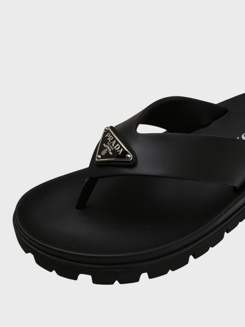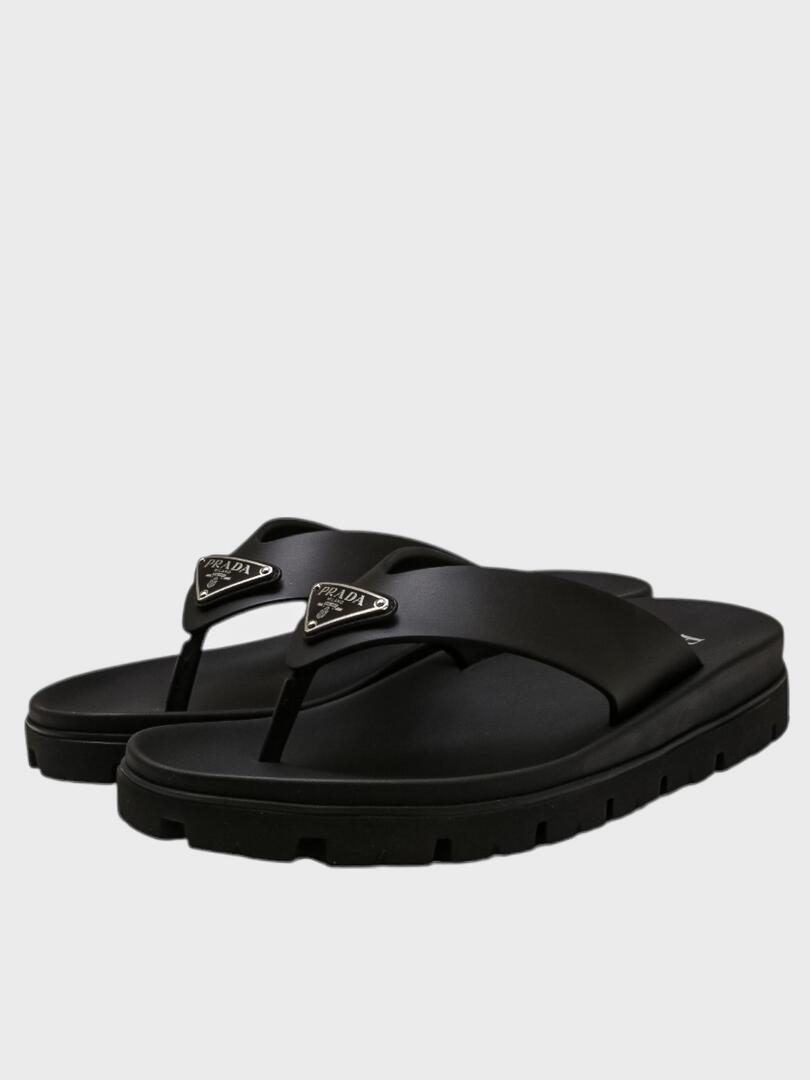 Тапочки Prada выполнены из черной резины с текстурным покрытием. Модель дополнена золотым треугольным логотипом на язычке, который придает изделию узнаваемый премиальный стиль. Удобная застежка-петля обеспечивает комфортную посадку, а массивная подошва с рифленой поверхностью гарантирует устойчивость и длительный комфорт. Современный дизайн и высокое качество материалов делают эти тапочки идеальным выбором для повседневного использования. Основа: резина Подошва: резина Откройте для себя мир итальянской роскоши с коллекциями Prada. Каждое изделие бренда — это сочетание безупречного качества, инновационного дизайна и интеллектуального подхода к моде. Будь то культовая сумка Galleria, элегантное платье или стильные аксессуары, продукция Prada подчеркнёт вашу индивидуальность и создаст неповторимый образ.