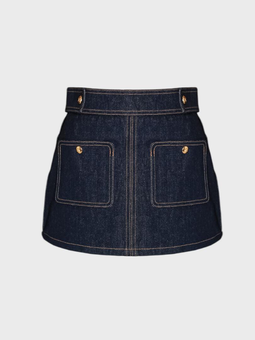 Юбка Celine выполнена из темно-синего денима высокого качества. Модель представляет собой мини-юбку с высокой талией, что придает фигуре стройность и подчеркивает силуэт. Юбка оформлена двумя большими карманами спереди, закрывающимися золотыми пуговицами с логотипом бренда "CELINE". Детали, такие как контрастная светло-коричневая строчка и аккуратные швы, добавляют юбке элегантности и стиля. Застежка на молнию и кнопку обеспечивает комфортную посадку. Идеально подходит для создания современного и модного образа, сочетая в себе практичность и стиль. 100% хлопок Погрузитесь в мир утончённого минимализма с коллекциями Celine. Каждое изделие бренда отражает сочетание элегантности и функциональности, подчёркивая индивидуальность своего владельца. Будь то культовая сумка Trapeze, стильный жакет или аксессуар, продукция Celine станет неотъемлемой частью вашего гардероба, сочетая высокое качество и современный дизайн.
