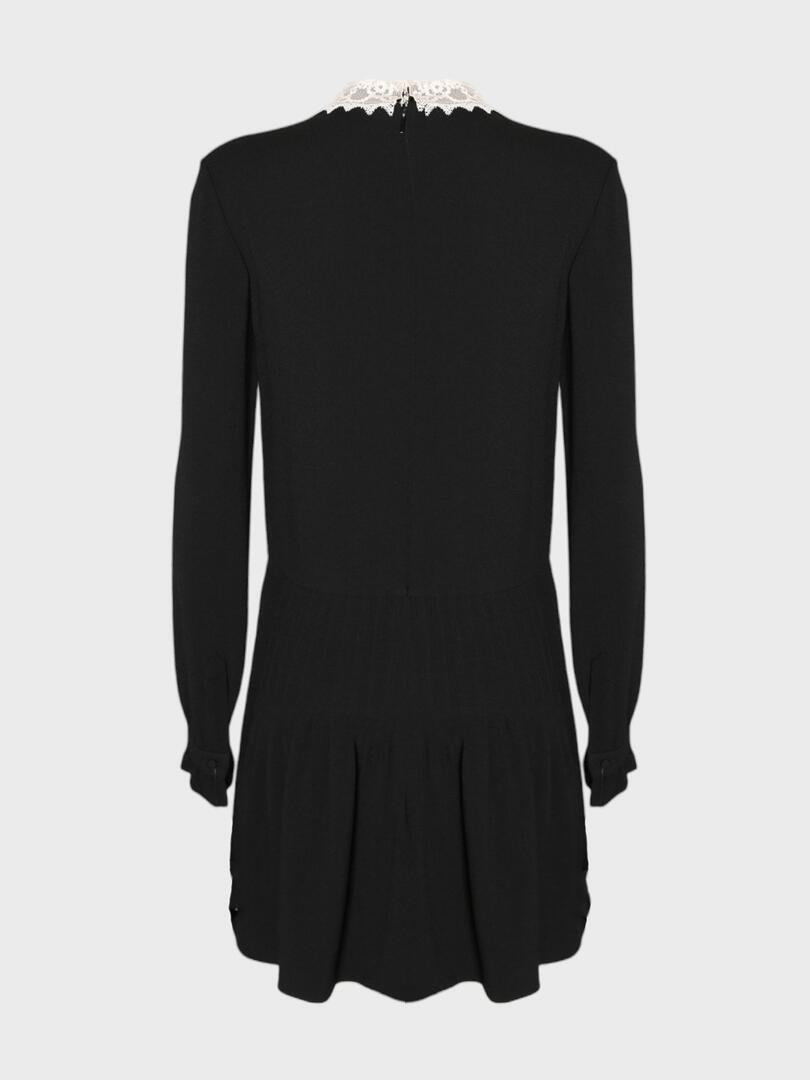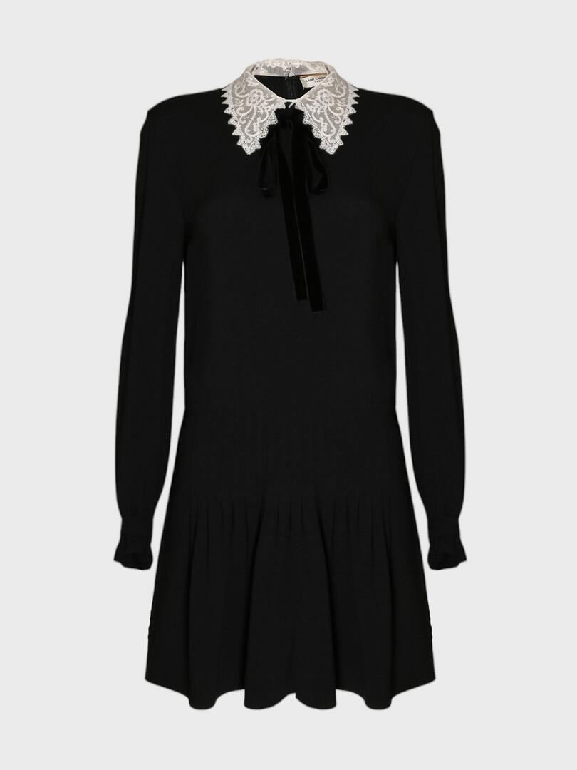 Платье Saint Laurent выполнено из черного шелка с длинными рукавами и пышной юбкой. Модель дополнена декоративным кружевным воротником, который придает изделию элегантность и романтический акцент. Простой силуэт и комфортная посадка делают это платье идеальным выбором для вечерних мероприятий или особого случая. Ткань: 53% ацетат 47% вискоза Воротник: 100% полиэстер Отделка: 90% вискоза 10% полиамид Saint Laurent — французский модный дом, основанный в 1961 году Ивом Сен-Лораном и Пьером Берже. Бренд стал известен благодаря элегантной и стильной одежде, а также внедрению революционных идей в моду, таких как мужской костюм для женщин. Сегодня Saint Laurent продолжает оставаться одним из ведущих брендов в мире моды. Под руководством Энтони Ваккарелло, который возглавил бренд в 2016 году, Saint Laurent сохраняет свою узнаваемость и приверженность к роскоши, сочетая классику с современными элементами. Основные направления — готовая одежда, обувь, аксессуары и парфюмерия.