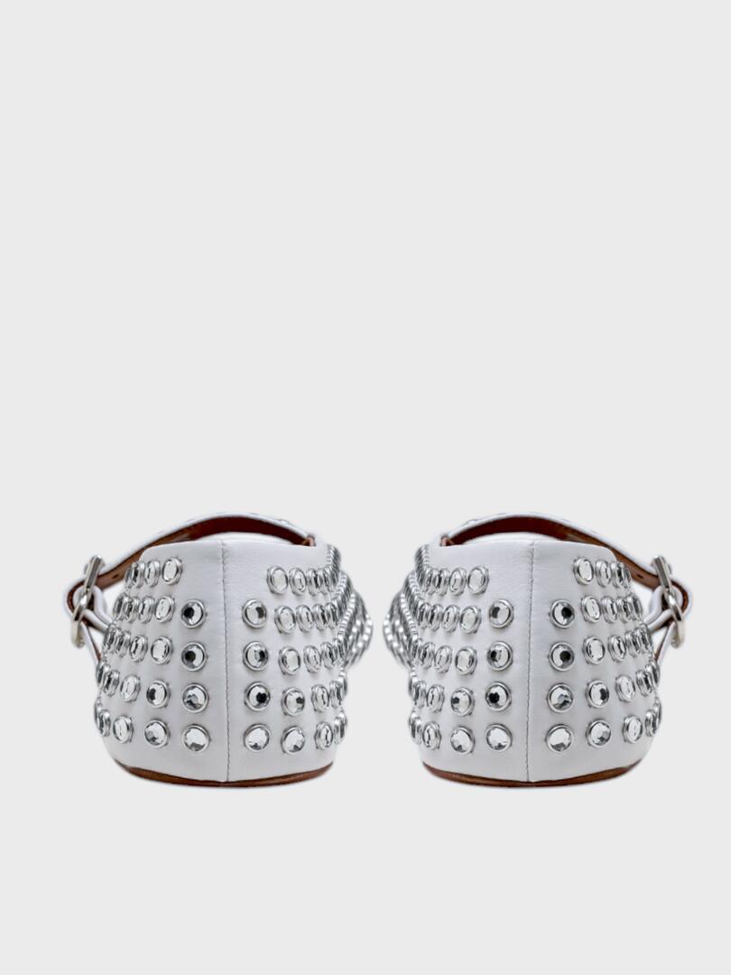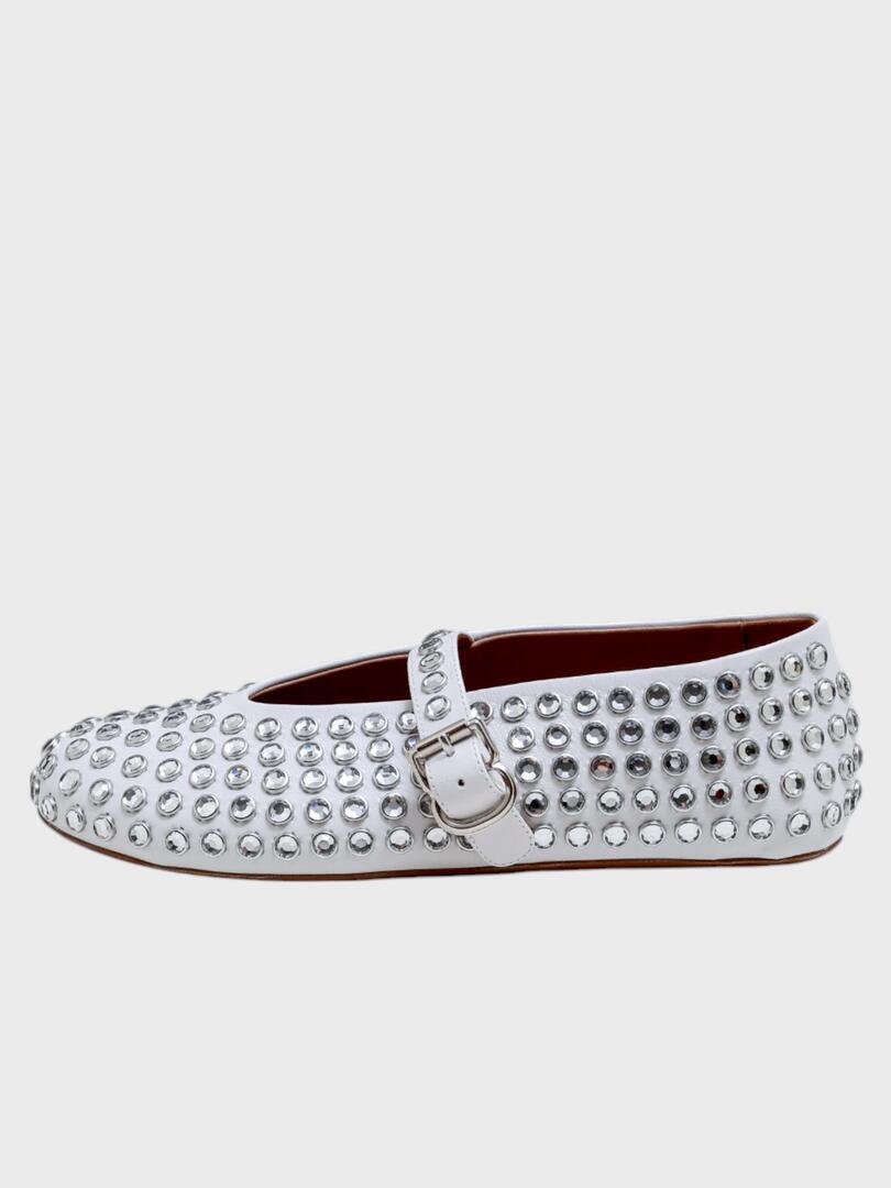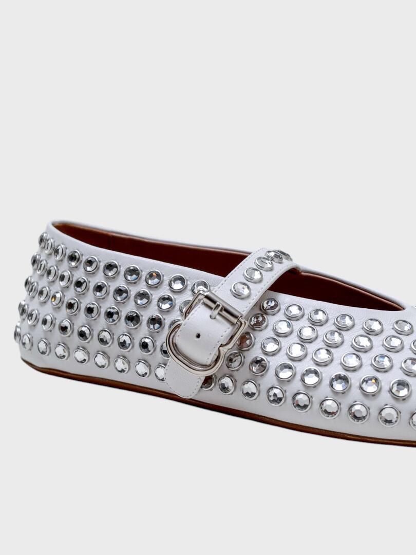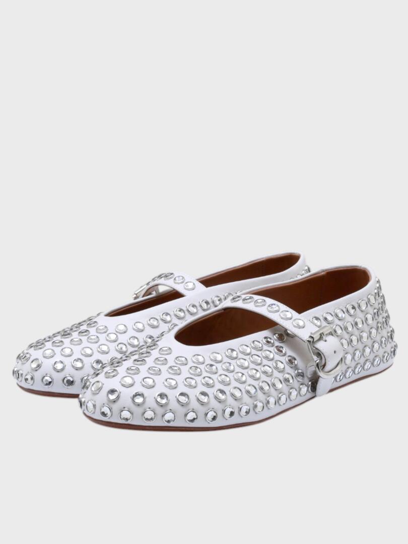 Балетки ALAIA выполнены из белой кожи с плотным покрытием стразами по всей поверхности; модель с ремешком на лодыжке и металлической пряжкой — сочетание элегантности, роскоши и современного дизайна, идеально подходящее для вечернего образа или особого случая. Основа: кожа Подошва: резина Погрузитесь в мир утончённой элегантности с коллекциями Ala?a. Каждое изделие бренда — это воплощение мастерства и стиля. Скульптурные силуэты, высококачественные материалы и внимание к деталям делают продукцию Ala?a идеальной для тех, кто ценит красоту и комфорт. Будь то платье, обувь или аксессуар — продукция Ala?a подчеркнёт вашу индивидуальность и создаст неповторимый образ на любой случай.