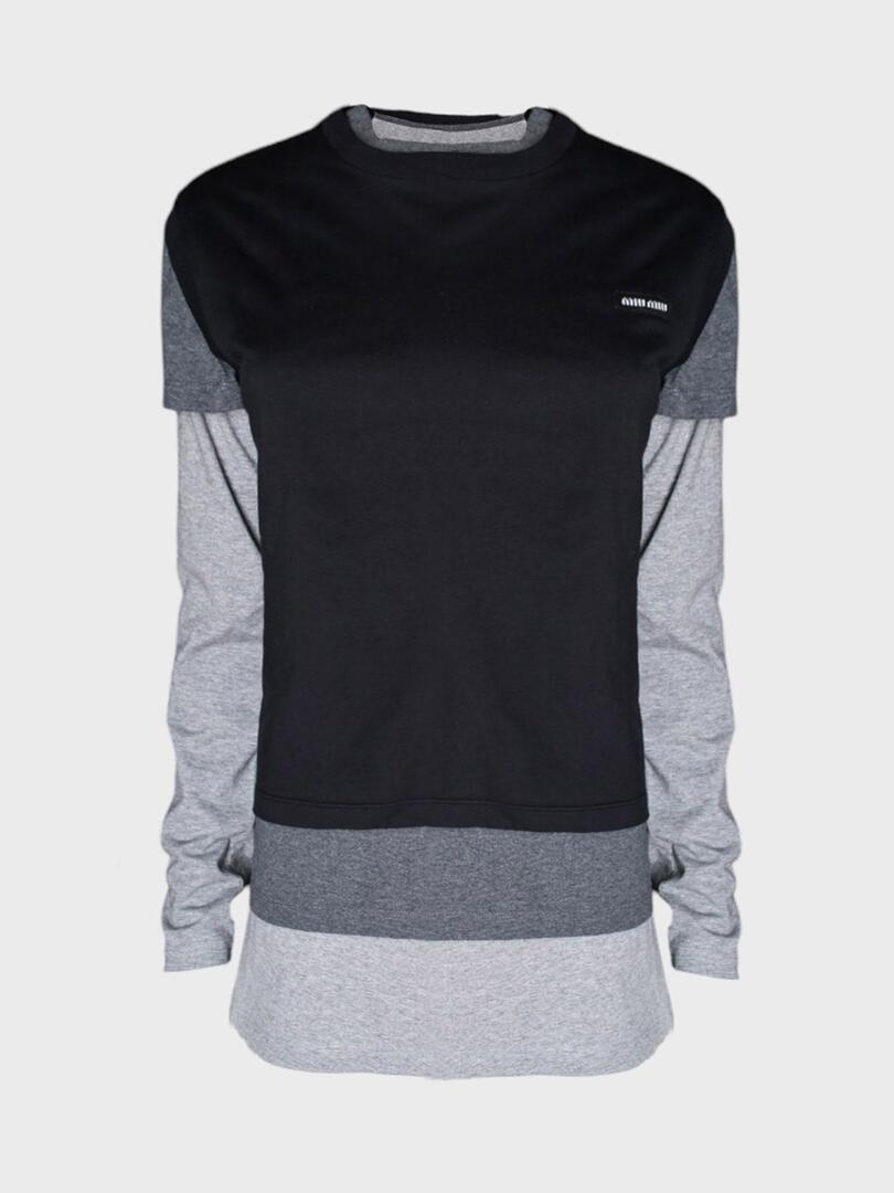 Лонгслив Miu Miu выполнен в черно-серых тонах с контрастными вставками и логотипом бренда на груди. Модель сочетает плотную и мягкую ткани, обеспечивая комфорт и стиль. Простой крой делает его универсальным элементом повседневного гардероба. 100% хлопок Погрузитесь в мир смелого и игривого стиля с коллекциями Miu Miu. Каждое изделие бренда — это сочетание элегантности и дерзости, отражающее современную женственность. Будь то мини-юбка, балетные туфли или стильная сумка, продукция Miu Miu подчеркнёт вашу индивидуальность и создаст неповторимый образ. Смело сочетайте классику с авангардом и будьте в центре внимания с Miu Miu.