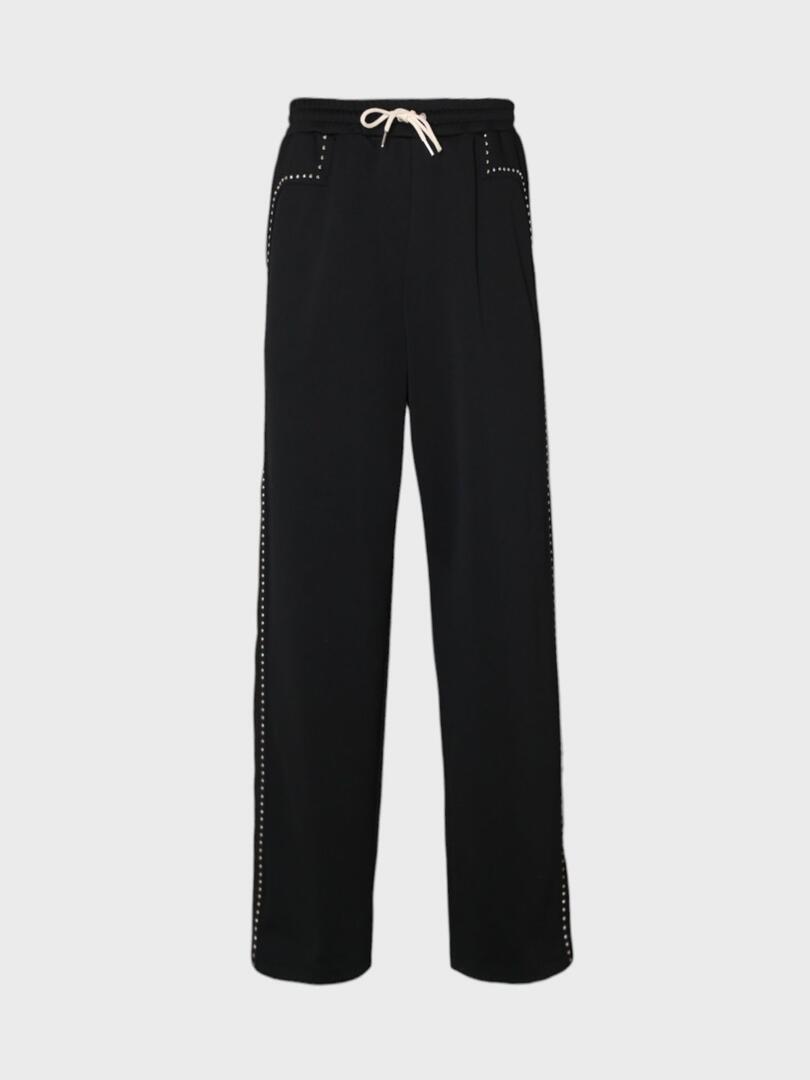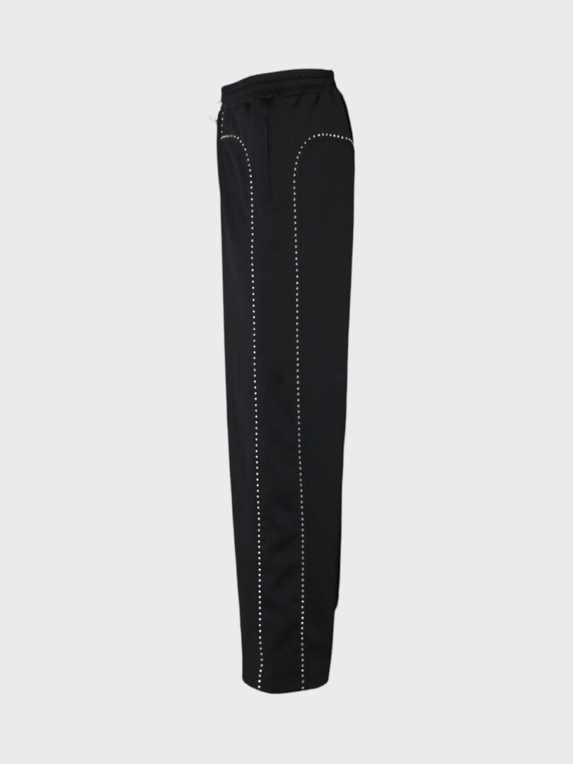 Брюки Celine выполнены из мягкого, высококачественного материала черного цвета. Модель имеет прямой крой и эластичный пояс с шнурком для регулировки размера. Особенностью этих брюк является декоративная отделка в виде рядов маленьких металлических заклепок или страз, расположенных по бокам и на карманах. Этот элемент добавляет изделию современный и стильный акцент, придавая ему более модный и уникальный вид. Брюки отличаются комфортной посадкой и универсальностью, подходящей как для повседневной носки, так и для создания различных образов. Их можно сочетать с различными верхними вещами, начиная от свитшотов и топов до рубашек и блузок, создавая как спортивные, так и более утонченные луки. 100% полиэстер Погрузитесь в мир утончённого минимализма с коллекциями Celine. Каждое изделие бренда отражает сочетание элегантности и функциональности, подчёркивая индивидуальность своего владельца. Будь то культовая сумка Trapeze, стильный жакет или аксессуар, продукция Celine станет неотъемлемой частью вашего гардероба, сочетая высокое качество и современный дизайн.