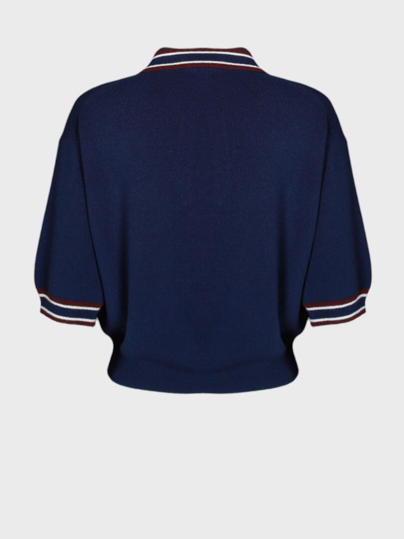 Костюм Miu Miu состоит из темно-синего трикотажного поло и юбки-плиссе. Поло выполнено из мягкого материала с контрастным воротником и манжетами, декорированными белой и красной полосками. На груди расположена вышивка логотипа бренда. Юбка плиссированная, идеально сочетается с верхней частью комплекта, создавая элегантный и современный образ для повседневного использования. 70% шерсть 30% кашемир Погрузитесь в мир смелого и игривого стиля с коллекциями Miu Miu. Каждое изделие бренда — это сочетание элегантности и дерзости, отражающее современную женственность. Будь то мини-юбка, балетные туфли или стильная сумка, продукция Miu Miu подчеркнёт вашу индивидуальность и создаст неповторимый образ. Смело сочетайте классику с авангардом и будьте в центре внимания с Miu Miu.