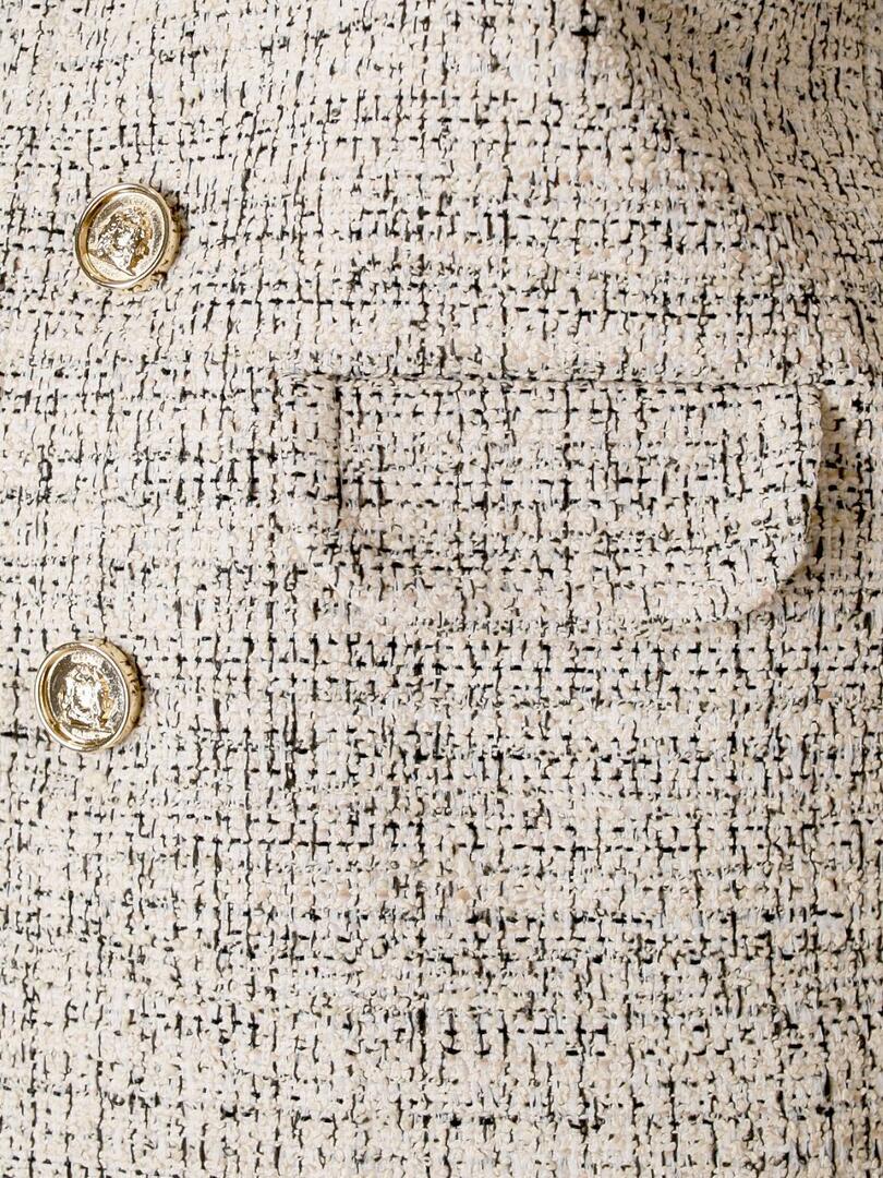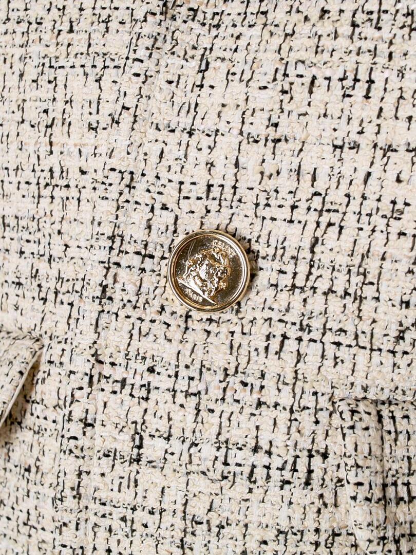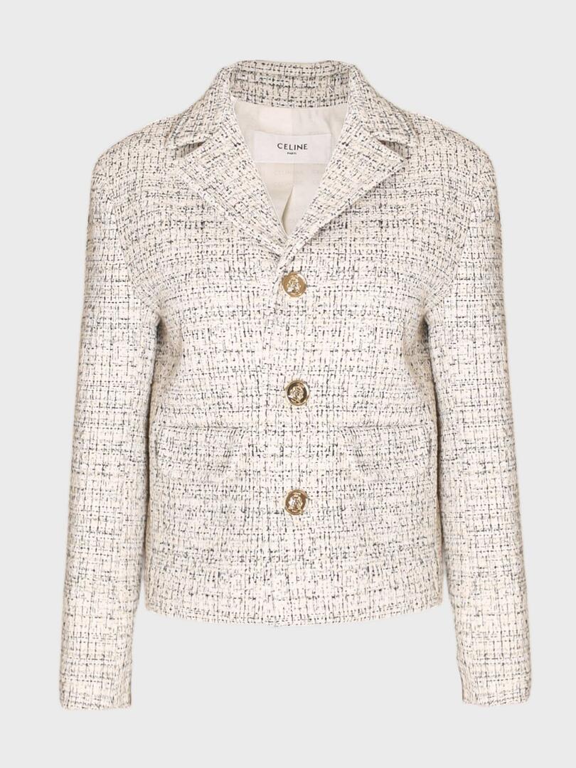 Жакет Celine выполнен из качественного твида с текстурным узором в светло-бежевых тонах. Модель дополнена двумя крупными кнопками на передней части и классическим отложным воротником. Простой силуэт и акцент на качество материалов делают этот жакет универсальным элементом гардероба для различных мероприятий, особенно подходящим для делового или официального стиля. Ткань: 48% полиэстер 38% хлопок 9% акрил 5% другие волокна Подкладка: 51% модал 49% вискоза Погрузитесь в мир утончённого минимализма с коллекциями Celine. Каждое изделие бренда отражает сочетание элегантности и функциональности, подчёркивая индивидуальность своего владельца. Будь то культовая сумка Trapeze, стильный жакет или аксессуар, продукция Celine станет неотъемлемой частью вашего гардероба, сочетая высокое качество и современный дизайн.