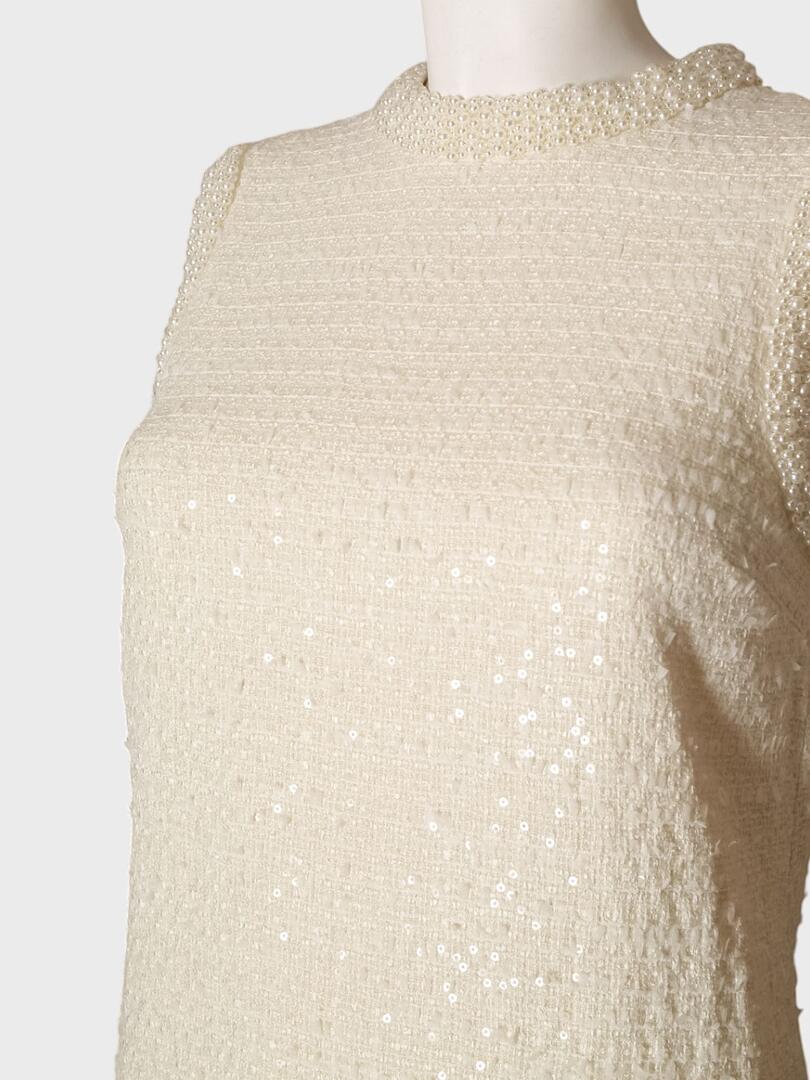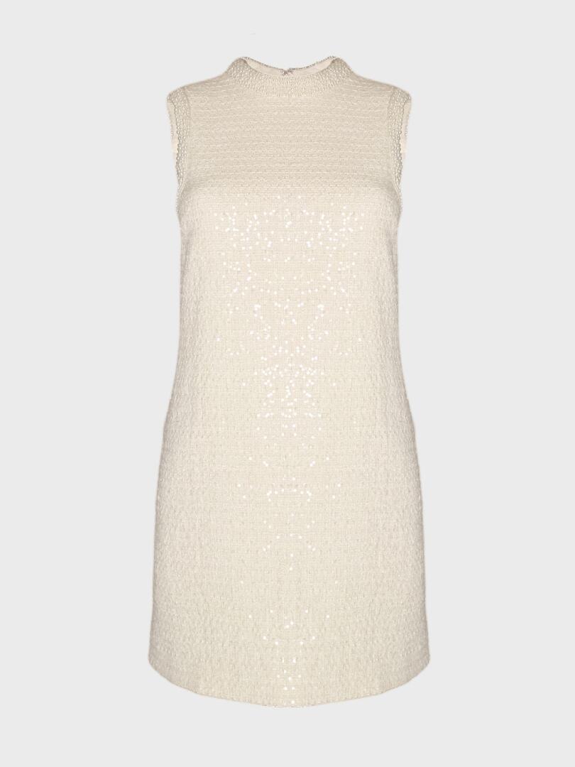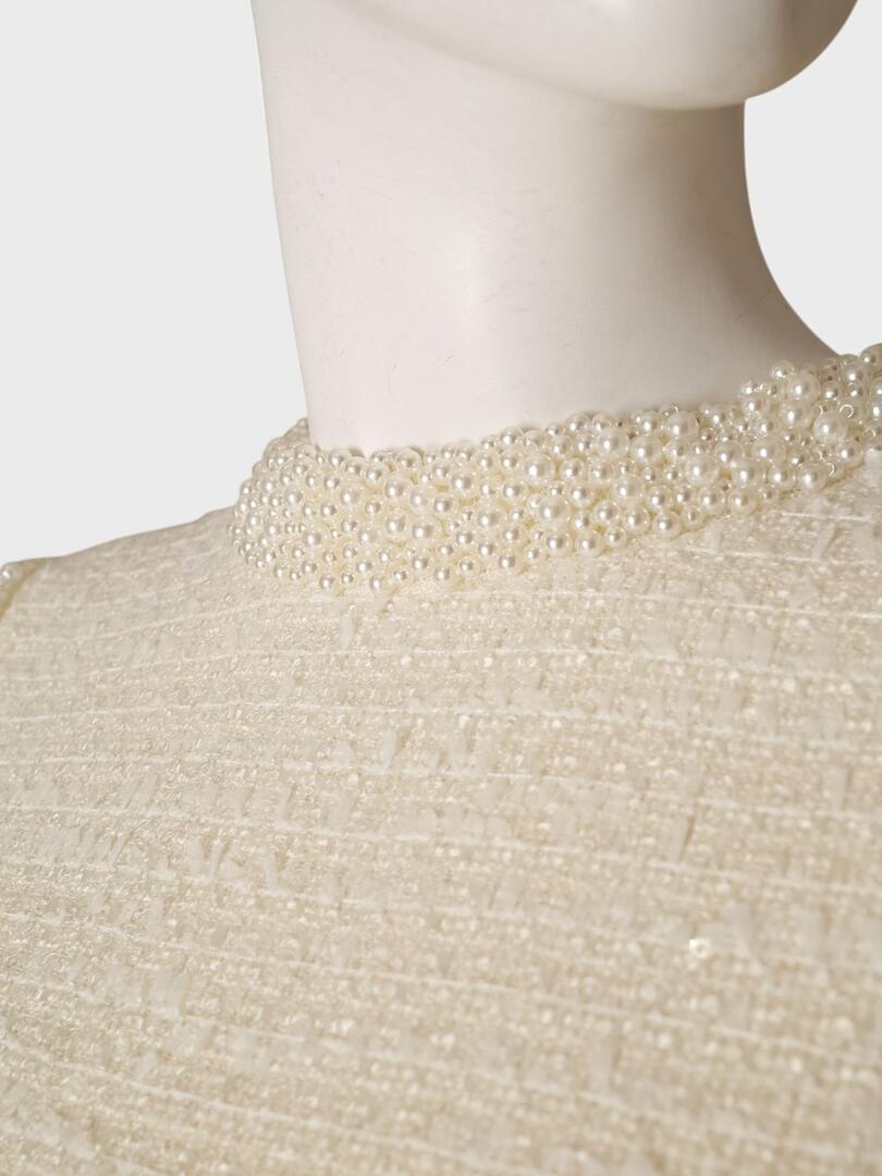 Платье Self-Portrait выполнено из мягкого бежевого материала с комфортным облегающим кроем. Модель дополнена декоративными элементами: жемчужинами на воротнике и блестками, расшитыми по всей поверхности платья. Простой дизайн и элегантные детали делают платье идеальным выбором для вечерних мероприятий или особенных случаев. Основа: 58% акриловое волокно 31% полиэстер 11% полиамид Подкладка: 100% полиэстер Погрузитесь в мир утончённой женственности с коллекциями Self-Portrait. Каждое изделие бренда — это сочетание элегантного дизайна и современной эстетики, подчёркивающее индивидуальность и уверенность женщины. Будь то культовая кружевная платье, стильный жакет или изысканный аксессуар, продукция Self-Portrait станет неотъемлемой частью вашего гардероба, сочетая высокое качество и современный стиль.