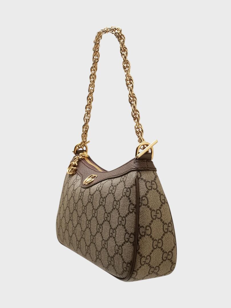 Сумка Gucci выполнена из высококачественного GG Supreme канваса с фирменным монограммным принтом, дополненным кожаными вставками. Модель оснащена золотистой цепью и ремнем-цепочкой, а также декорирована двойным G-логотипом из металла. Застежка-молния обеспечивает надежное хранение вещей, а внутреннее отделение рассчитано на ежедневные аксессуары. Стильный дизайн и качественные материалы делают эту сумку идеальным выбором для современных модниц, предпочитающих сочетание классики и актуальных трендов. высококачественный текстиль Погрузитесь в мир итальянской роскоши с коллекциями Gucci. Каждое изделие бренда — это сочетание безупречного качества, элегантного дизайна и инновационного подхода. Будь то культовая сумка GG Marmont, стильный жакет или элегантное платье, продукция Gucci подчеркнёт вашу индивидуальность и создаст неповторимый образ.