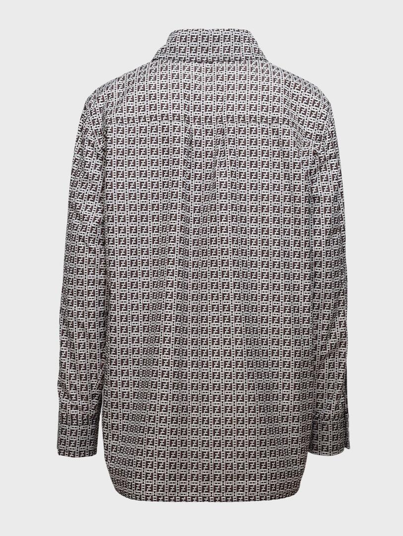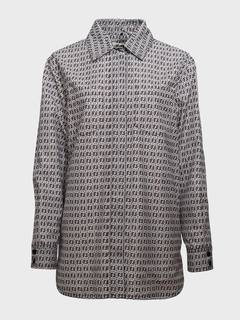 Рубашка Fendi выполнена из качественного шелкового материала в черно-белом цвете с узором, повторяющим фирменный логотип бренда. Модель дополнена классическим воротником и длинными рукавами, создавая элегантный и современный силуэт. Простой крой подчеркивает безупречное качество исполнения, а графичный принт делает рубашку идеальным аксессуаром для делового или вечернего образа. 100% полиэстер Откройте для себя Fendi — итальянскую роскошь, где традиции мастерства встречаются с современным шиком. Бренд, известный своим фирменным логотипом FF, меховыми изделиями и безупречной кожей, создаёт коллекции полные элегантности, гламура и силы. От культовых сумок Baguette до стильных пальто и аксессуаров — каждая вещь подчёркивает статус и вкус. Идеально для тех, кто ценит наследие, качество и моду, которая говорит сама за себя. Fendi — вечная роскошь в движении.