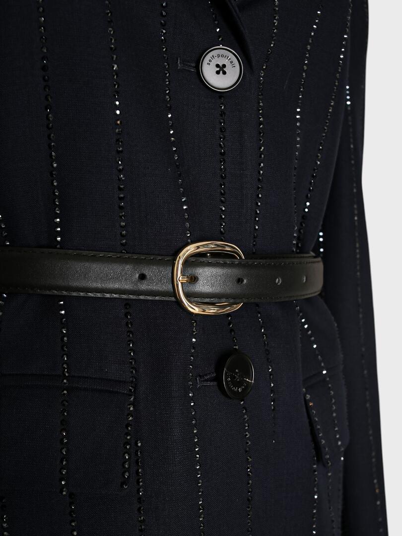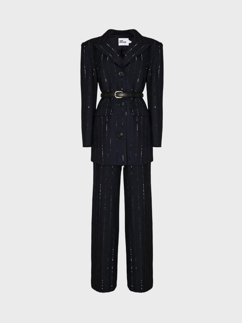 Костюм Self-Portrait выполнен из темно-синего материала с эффектом пайеток, создавая блестящий и современный образ. Модель состоит из приталенного жакета с длинными рукавами и декоративной застежкой на пуговицы, а также брюк прямого кроя. Жакет дополнен кожаным ремнем для акцента на талии, что подчеркивает фигуру. Идеально для вечерних мероприятий или деловых встреч благодаря своему элегантному и стильному дизайну. Основа: 64% полиэстер 31% вискоза 5% эластан Подкладка: 100% полиэстер Погрузитесь в мир утончённой женственности с коллекциями Self-Portrait. Каждое изделие бренда — это сочетание элегантного дизайна и современной эстетики, подчёркивающее индивидуальность и уверенность женщины. Будь то культовая кружевная платье, стильный жакет или изысканный аксессуар, продукция Self-Portrait станет неотъемлемой частью вашего гардероба, сочетая высокое качество и современный стиль.