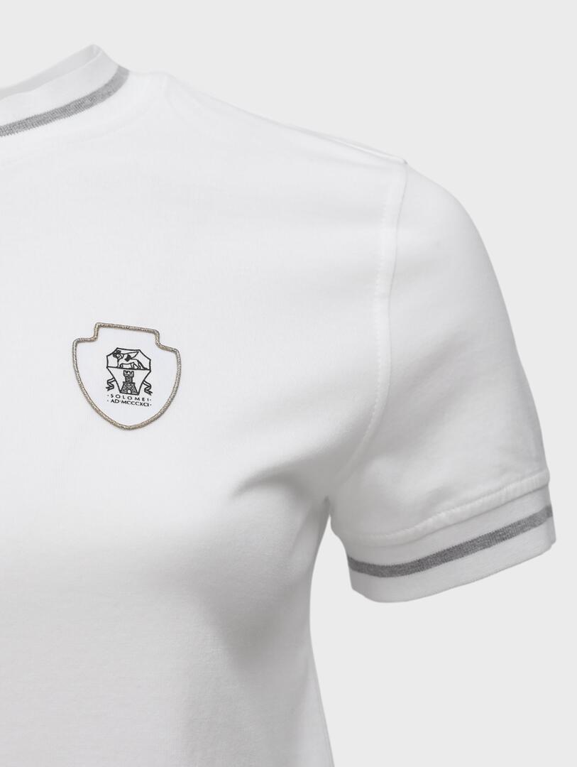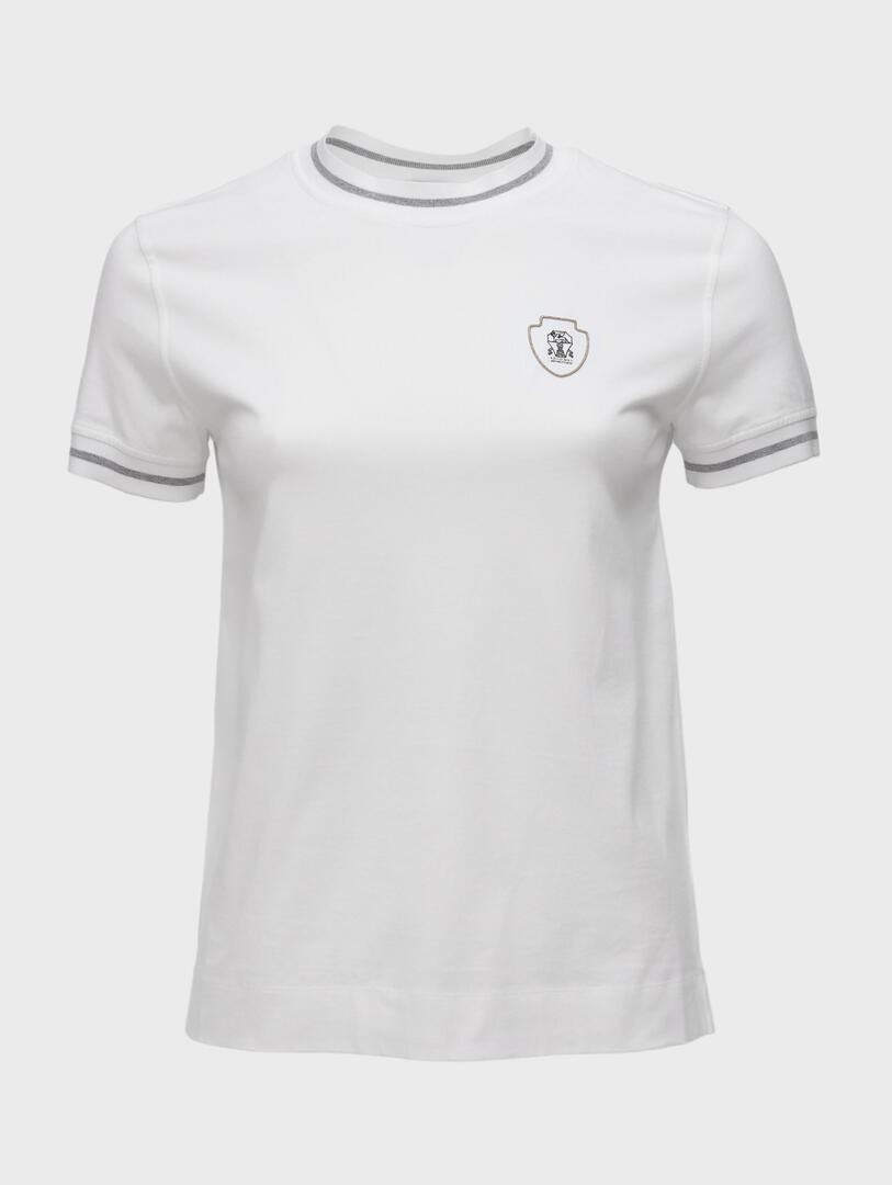 Футболка Brunello Cucinelli выполнена из мягкой белой ткани с акцентной серой окантовкой по воротнику и манжетам, сочетает классический крой и округлый вырез; украшена небольшим вышитым логотипом бренда на груди — простой, но изысканный элемент повседневного гардероба в духе утончённой элегантности. 100% хлопок Погрузитесь в мир утончённой элегантности с коллекциями Brunello Cucinelli. Каждое изделие бренда — это сочетание высочайшего качества материалов, безупречного исполнения и философии гуманистического подхода. Будь то кашемировый свитер, стильный костюм или аксессуар, продукция Brunello Cucinelli подчеркнёт вашу индивидуальность и создаст неповторимый образ.